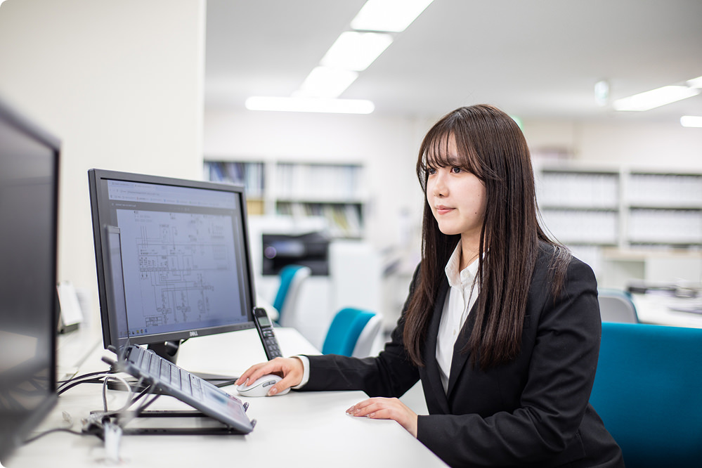 中部支店名古屋産業システム課にて、営業を担当。現在は主に見積や図面など各種資料の作成、先輩との同行訪問、展示会での製品PRなどの場を通して、営業活動について学び経験を積んでいる。